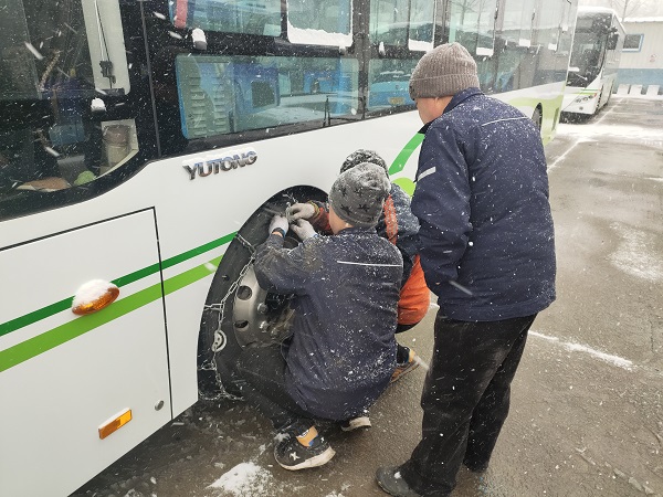 科學(xué)研判,做好運(yùn)營組織工作。市公交集團(tuán)和各營運(yùn)單位負(fù)責(zé)人提前趕赴各公交場站、車隊,現(xiàn)場指揮,合理調(diào)度運(yùn)力。各車隊利用班前會和晨會做好駕駛員冰雪天氣行車注意事項及應(yīng)急措施再培訓(xùn)工作,強(qiáng)化駕駛員雪天行車安全意識。加強(qiáng)營運(yùn)車輛檢查維修工作,從12月23日夜,加班加點對1606臺運(yùn)營車輛的安全部件和剎車性能進(jìn)行重點檢查,確保車輛技術(shù)狀況良好。