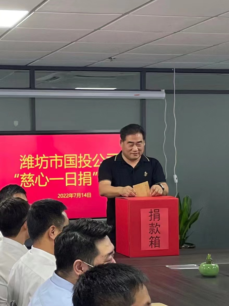 為進一步弘揚崇慈向善、扶貧濟困的傳統(tǒng)美德,7月14日下午,市國投公司開展“慈善一日捐”活動。 活動現(xiàn)場,公司班子率先垂范,帶頭參與,全體職工積極響應,踴躍捐款,依次將凝聚著愛心的善款投入箱內(nèi),共同為慈...
